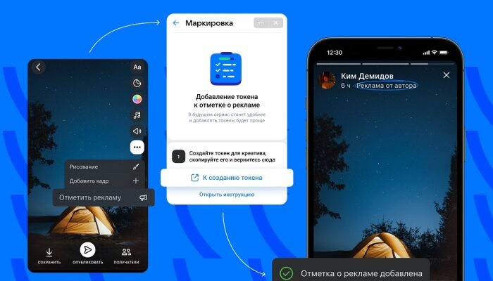 ВКонтакте тестирует инструмент для маркировки рекламы в постах, клипах, историях и видео. Интеграция с оператором рекламных данных (ОРД) поможет создателям